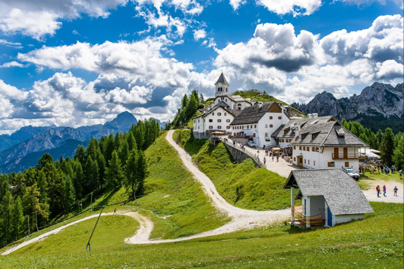 Monte Santo di Lussari je malo mjesto smješteno na istoimenoj planini na nadmorskoj visini od 1790 metara - usred visokih planina i tamnih stoljetnih šuma. U središtu sela smjestila se slavna hodočasnička crkva Sv. Marije. Korijeni svetišta datiraju iz 1360. godine, kada je pastir iz Camporossa izgubio stado ovaca na planini Lussari. Nakon duge potrage pronašao je ovce okupljene u krug oko grma. Pažljivo je pogledao na ukazani prizor i u grmu ugledao kip Marije Djevice s djetetom. Podigao je kip, spustio se u dolinu do crkve i predao kip župniku u Camporossu.